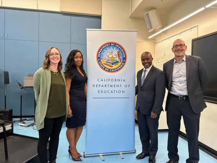 Personal Finance teacher Crystal Rigley Janis, Berkeley Superintendent Enika Ford, CA State Superintendent Tony Thurmond and owner of Next Gen Personal Finance Tim Ranzetta.